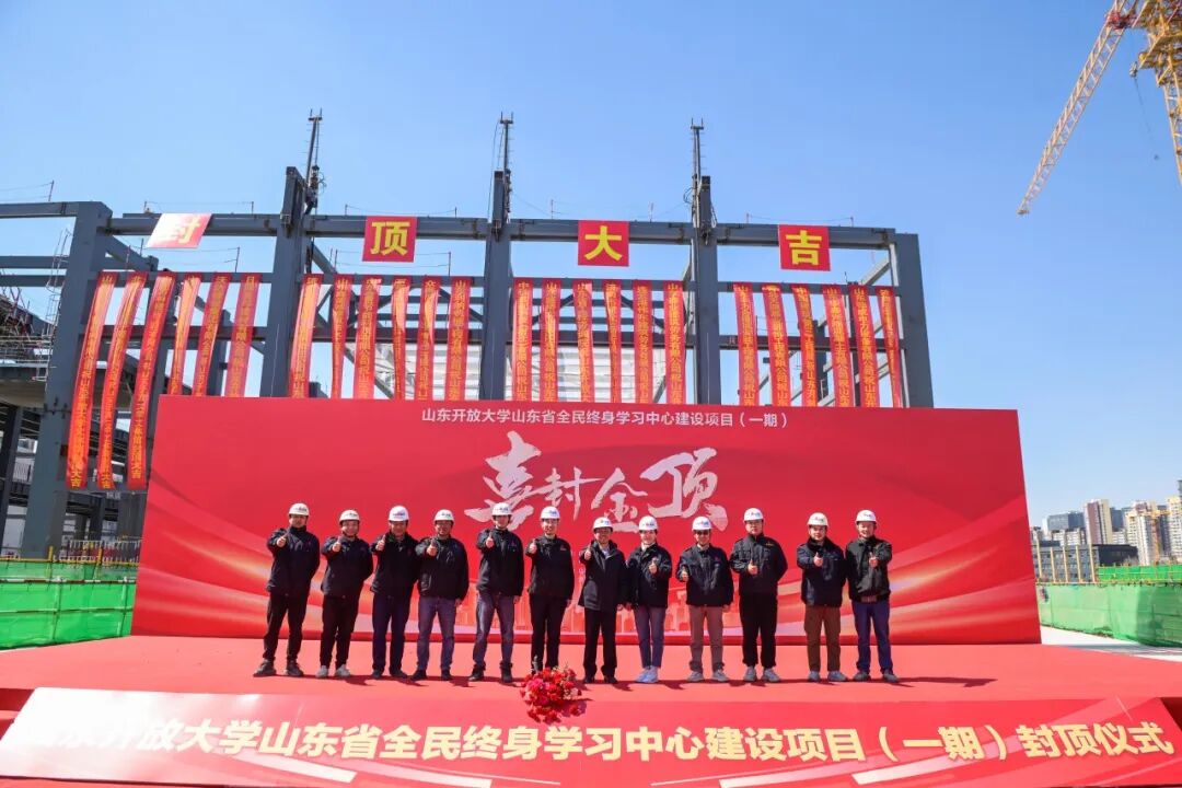 喜封金頂——山東開放大學(xué)山東省全民終身學(xué)習(xí)中心建設(shè)項目(一期)文體館順利封頂